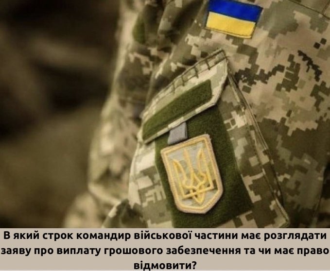 Командири військових частин розглядають надані заяви членів сімей не довше ніж 15 діб та ухвалюють рішення щодо виплати або відмови у виплаті грошового забезпечення, видаючи відповідний наказ, про що...