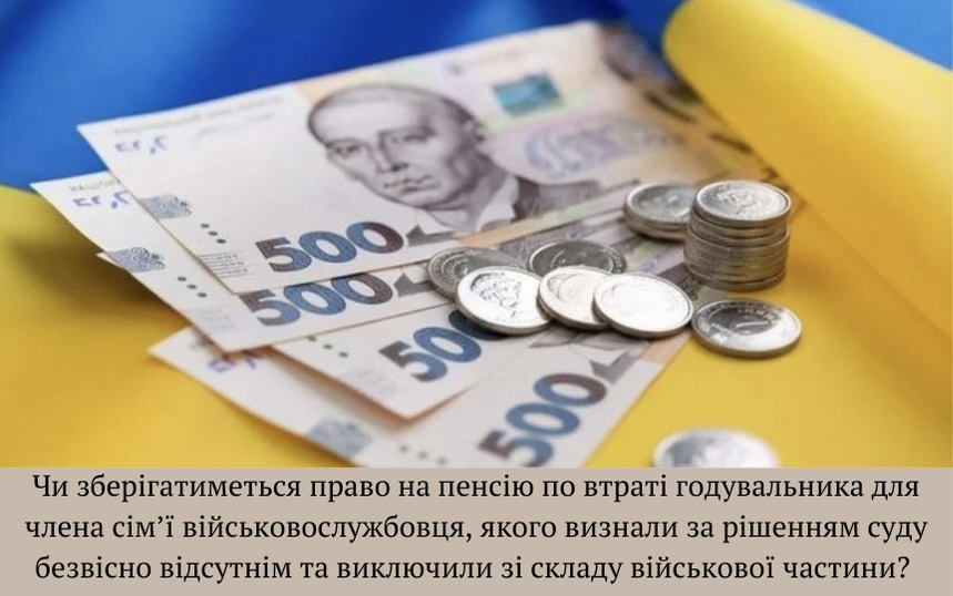 Право на пенсію по втраті годувальника у разі визнання військовослужбовця за рішенням суду безвісно відсутнім зберігається, проте регулюється це вже законом «Про пенсійне забезпечення осіб, звільнених з військової служби,...