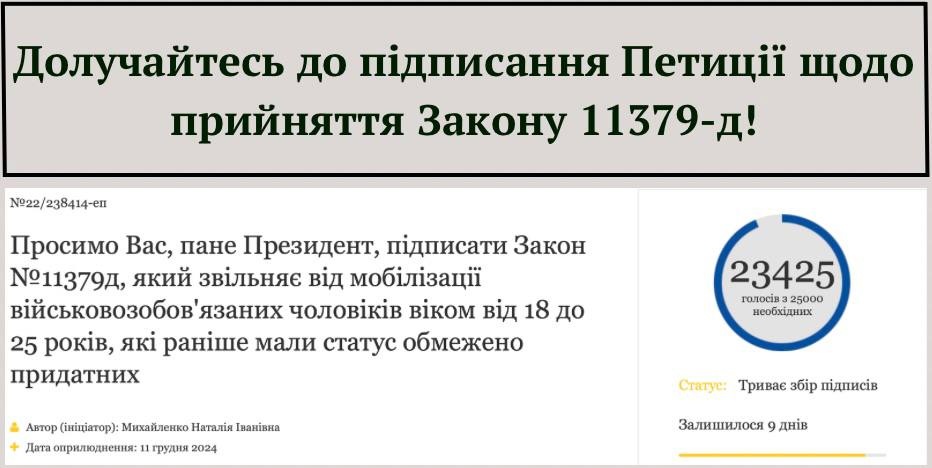Сотні тисяч обмежено-придатних юнаків та їхні близькі чекають на підписання законопроєкту 11379-д, який усуне юридичну колізію, через яку вони підпадають під мобілізацію. Ще з середини жовтня 2024 року ця...