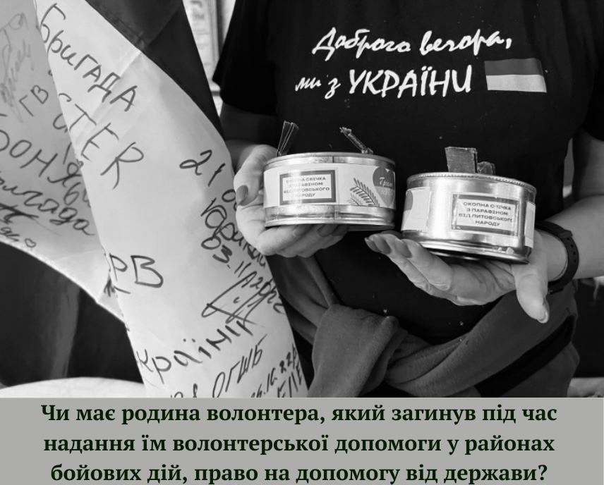 Законом України «Про волонтерську діяльність» передбачене право членів сім’ї волонтера на отримання одноразової грошової допомоги (ОГД) у разі його загибелі, за умови, що загибель відбулась під час надання їм...