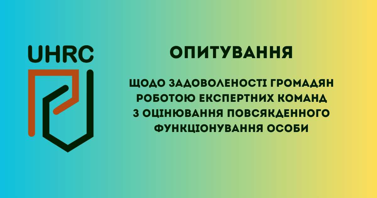 Для розуміння ситуації щодо роботи експертних команд з оцінювання повсякденного функціонування особи просимо пройти наше анонімне опитування. Це дуже важливо! https://forms.gle/u7pLVA6KTTtDzM517